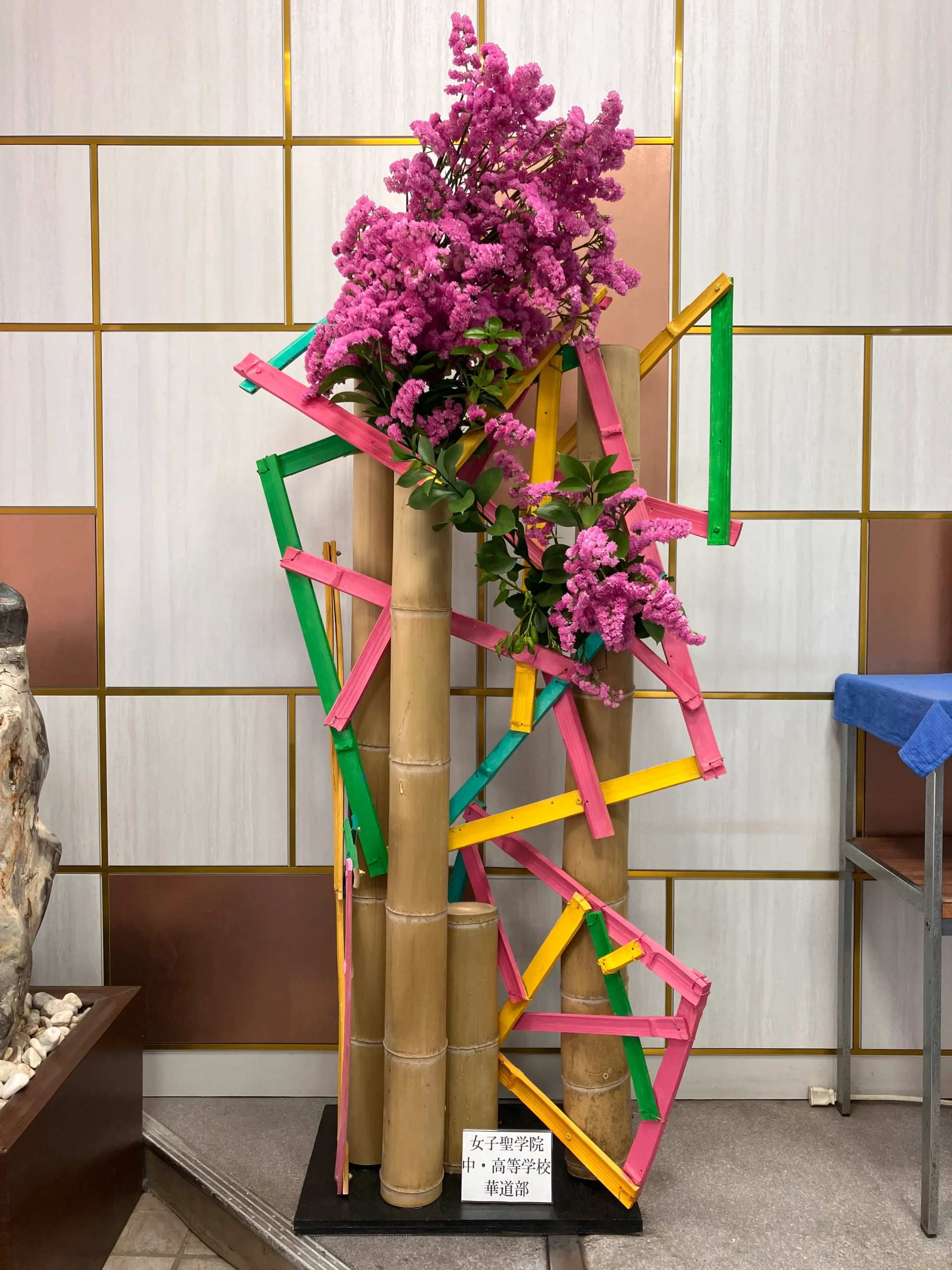 当院の正面入口にて、女子聖学院中学・高等学校 華道部の皆様が心を込めて制作されたいけばな作品を展示しております。